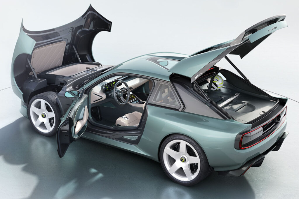 Mit dem EL1 will man nicht nur einen Hauch von Vintage vermitteln, sondern gezielt Erinnerungen an die großen, ikonischen Zeiten des Rallye-Sports wachrufen. Der markante, keilförmige Aufbau, die kraftvoll dimensionierten Hinterräder sowie die weit ausgestellten Radhäuser zitieren bewusst die kompromisslose Formsprache legendärer Wettbewerbsfahrzeuge der 1980er-Jahre. Dieser Auftritt verleiht dem Elektrosportwagen eine betont athletische Präsenz und unterstreicht seinen motorsportlichen Anspruch trotz moderner Antriebstechnik.